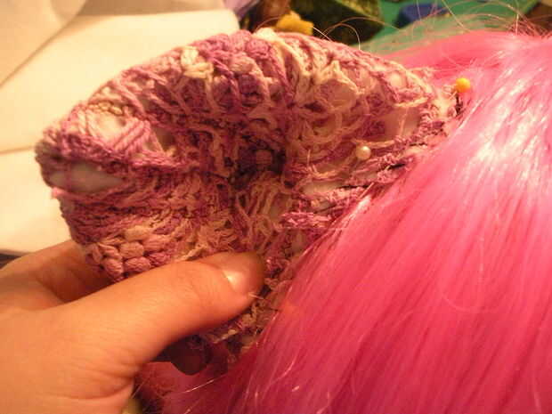 Paso 5: Paso 5 - peinar la peluca y coser las orejas.
