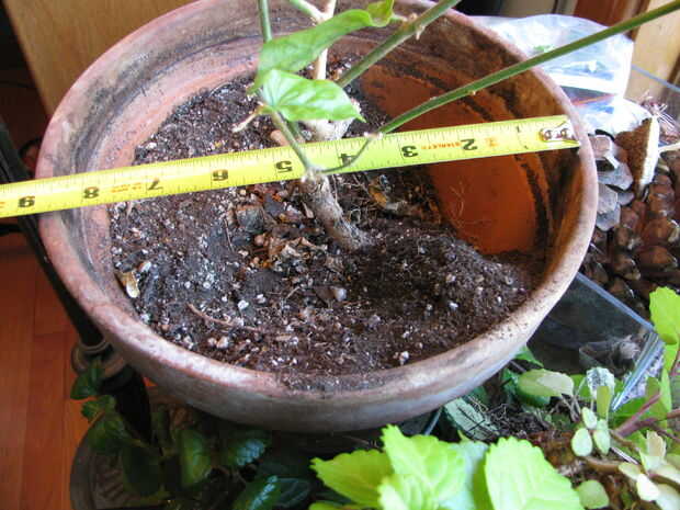 Mida el diámetro de la maceta, luego medir algún cartón. Usted hará un círculo de cartulina de aproximadamente una pulgada de diámetro más corto que el ancho de la olla a nivel del suelo.