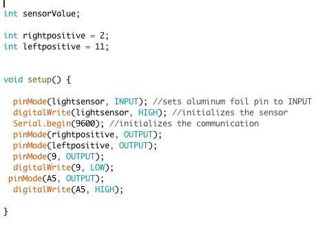 Ahora que tiene todas sus luces LED, Lilypad y sensor de luz cosido en, desea trabajar en su codificación para que pueda probar las luces y asegurarse de que funcionan. Que va a hacer todo de su codificación en la aplicación de Arduino que se puede descargar en su computadora. Las fotos te llevara todo lo que escriba en para asegurarse de que sus luces se encienda y apague. Programé mis luces para que las 3 luces del lado izquierdo va Estrellita y luego se apagarán. Entonces las 3 luces en la parte derecha brilla luego.