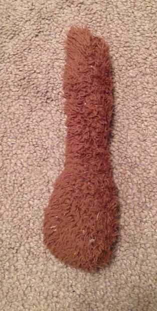 Ahora se llene la cola con su relleno y reservar. Coloque las dos piezas del cuerpo de su gato para que ellos están uno frente al otro. Cuando usted está buscando en debe hacer frente al "revés". Utilice el hilo de bordar para coser alrededor de cuerpo de gato, dejando dos boquetes: alrededor de las orejas y en la parte inferior. El espacio se utilizará para voltear el gato adentro hacia fuera para que se enfrenta ahora a la manera correcta. También se utilizará para rellenar el cuerpo.