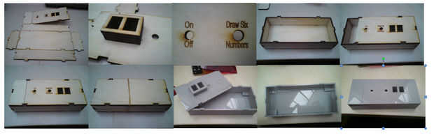 Estos son de mi tamaño de la caja. Mi primer cuadro que hice no funcionó estaba doblado hacia fuera debido a que cambiar de tamaño cada vez que utilicé el cortador del laser también sería el de capas. Entonces opté por usar acrílico en su lugar ya que era un material mucho mejor para unir y cortar. El tamaño de la foto es para el diseño de acrílico ya que es sobre todo más gruesas que la madera de la capa. Cortar rectángulos con una línea en el medio para crear un ambiente más oscuro cuando se observa las pantallas de LED. Grabado también texto en la parte superior para que la gente sabe lo que botones son para lo que ya es con los agujeros en la parte superior para un empuje interruptor para iniciar el dispositivo dando los números y un interruptor de encendido/apagado. Que es cómo crear mi generador de números ha diseñado para que la gente no tendría que escoger números mi proyecto lo haría por ellos.