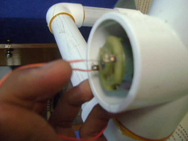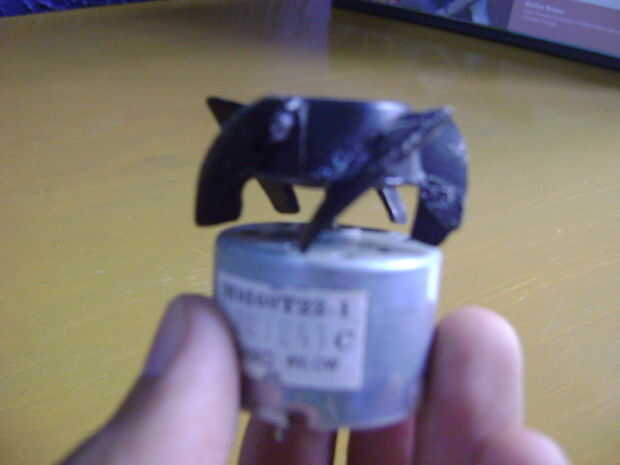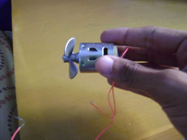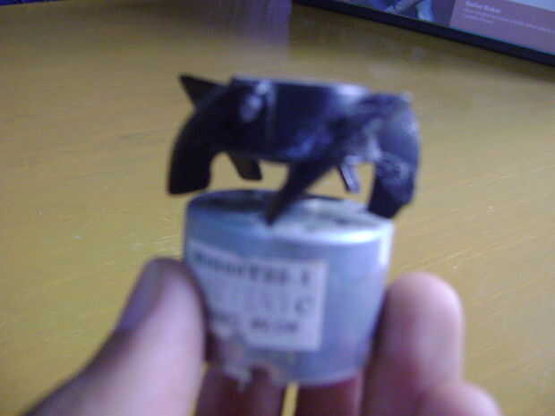 Ponga el motor en el orificio izquierdo destapamos al principio. Super pegamento adentro de tal manera que el ventilador puede girar libremente.