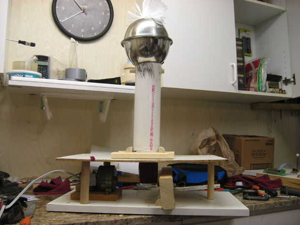esto me llevó alrededor de medio año para construir por lo que es muy especial para mí. El generador de Van de Graaff es a la derecha y la parte puesta a tierra está a la izquierda.