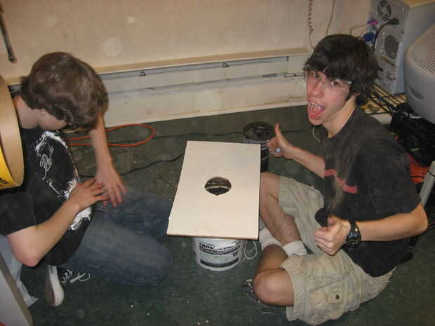• Corte un agujero de la supra-(¿hay algo mejor?) para el tubo de PVC que se sientan en