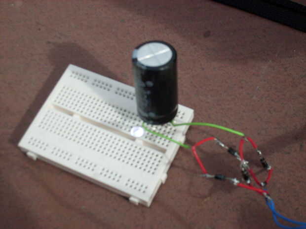 He construido este circuito con la esperanza de que el generador de viento, en que estoy trabajando tendrá menos rpm a girar para obtener el voltaje que necesito para cargar baterías o ejecutar luces en el viento que sopla. Es un circuito muy simple
