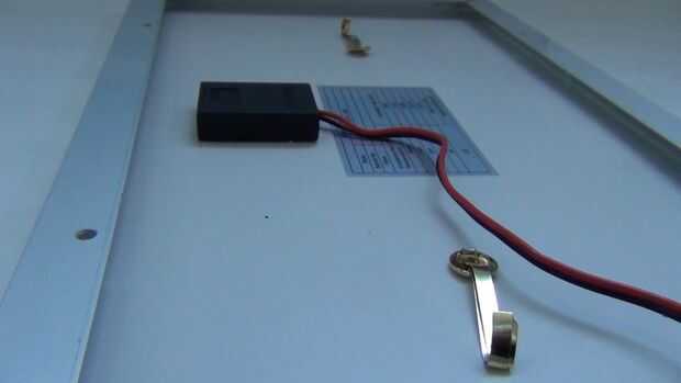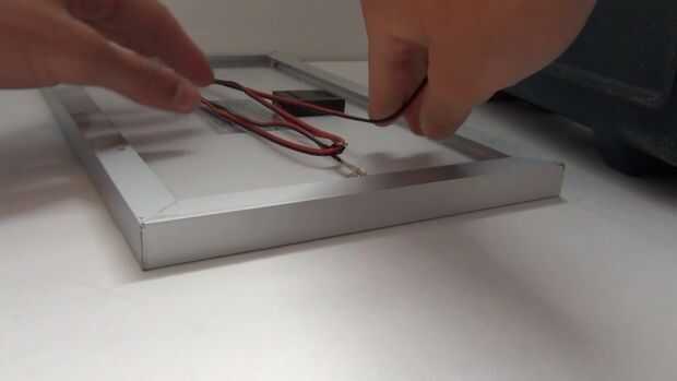 Lo que hice fue usar broches metal doblado y pegado a la parte posterior del panel solar para envolver el cable sobrante alrededor de
