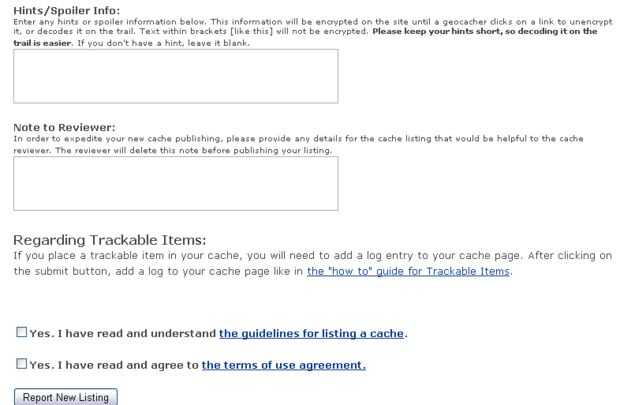 El último bit es presentarlo a los revisores. Ir al formulario en línea para informar el nuevo geocache. Siga los pasos de las imágenes de abajo.