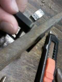 Obviamente el usb bastante encajaba todavía, así que tomé un palo de presentación cosita y rasgó lejos en los bordes del agujero hasta que lo hizo.