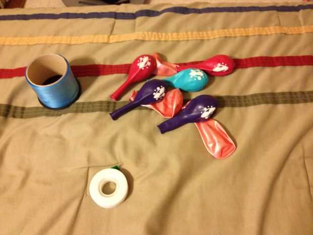 Necesitarás cinta, tijeras, y algunos globos de cualquier color o incluso imprimir si lo desea utilizar