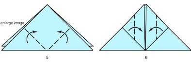 Doblar los bordes inferiores al punto superior. Hacerlo en ambos lados. Luego doblar en la esquina media que mitad cierto, hacer esto cuatro veces.