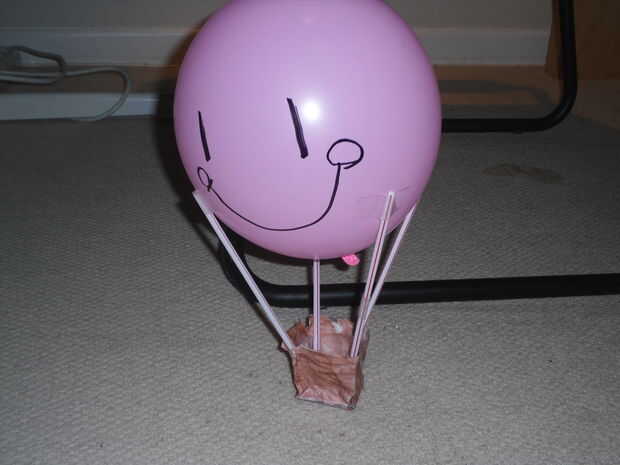 Paso 5: Ahora poner su figura muy pequeño y ligero mini dentro del globo de aire caliente. Pies de la figura mini en la parte inferior de la cesta (la base) o en otras palabras, en el globo de aire caliente de la cinta. Tienes que hacer esto o de lo contrario saldrá la figura mini. También puede utilizar pegamento para pegar los pies en el globo de aire caliente (cesta). Suavemente ponga una cara sonriente en el globo con marcador permanente, negro. Y ahí lo tienen! Tu propio globo aerostático! (Este paso es opcional, por lo que no tienes que poner una cara sonriente o poner una muñeca mini figura dentro)