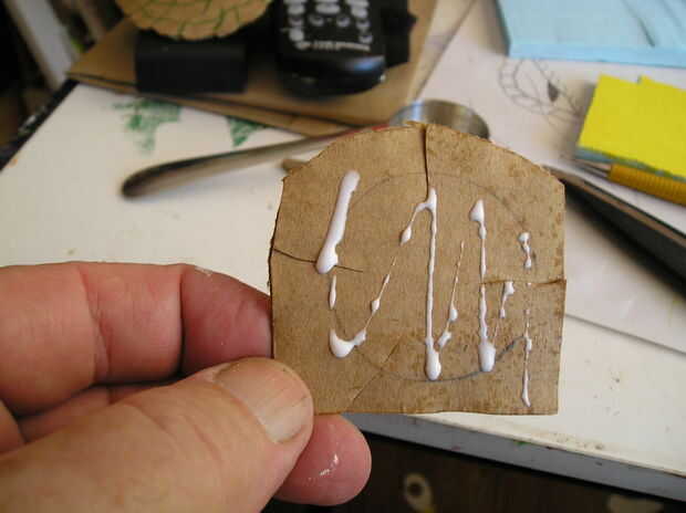 Justo antes de insertar el espacio en blanco, capa ambos lados con pegamento blanco... no es mucho, pero lo suficiente para mojar las superficies. También hacer atajos en cuatro lados para que puede doblar el cartón.