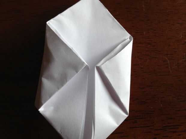 El último paso que doble hacia abajo las dos lengüetas pequeñas en la parte superior en ambos lados y doblar abajo en las pestañas por debajo de ellos.