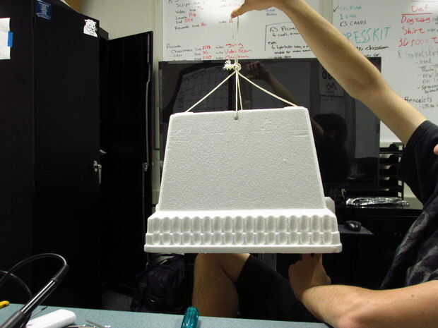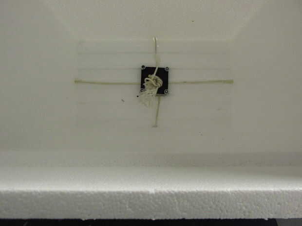 Pasar los cables de montaje a través de los agujeros en lados opuestos de la nevera y luego a través del orificio en la parte inferior placa de retención. Ahora, cuelgue con cuidado la carga por sus cuerdas para asegurarse de que es nivel, luego atar los cordones para que el nudo es nudo dentro del orificio en la parte inferior placa de retención. Asegúrese de que esto se hace bien con varios nudos seguros. Si estos fallan, hay una posibilidad que su carga se precipitan hacia la tierra. Una vez que los nudos son lazos, apretar las tuercas en las placas de sujeción para amarrar a los cables entre ellos.