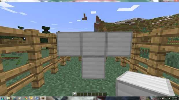 En este paso se utilizan los bloques de cuatro hierro. Se trata de cómo se coloque: poner dos justo encima de la otra, luego para el otro dos, puestos uno a cada lado del segundo bloque del suelo. Asegúrese de que están haciendo esto dentro del perímetro cercado.