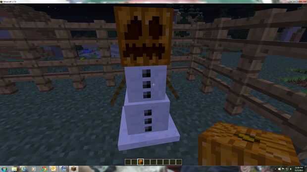 Para este paso, usted necesita el otro bloque cabeza de calabaza. Todo lo que necesitas hacer es la cabeza de calabaza encima de los bloques de dos nieve y vendrá a la vida.