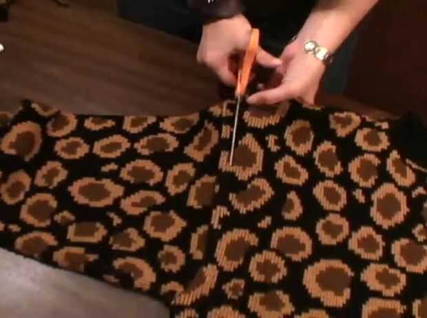 3. Corte las mangas y todos abajo en el borde a la parte inferior de la chompa.