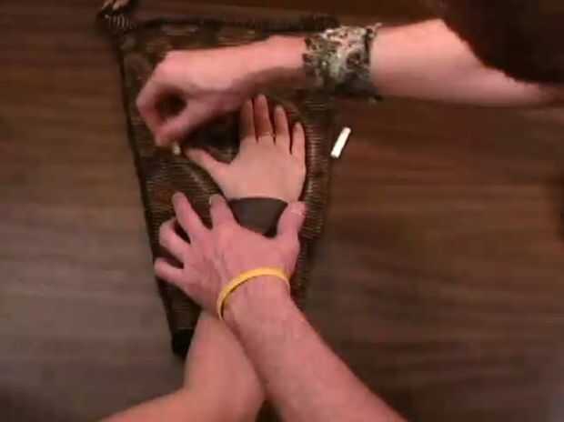 2. Pídale a un amigo para trazar alrededor de su mano y asegure las dos capas junto con unos alfileres dentro de su forma de mitón.