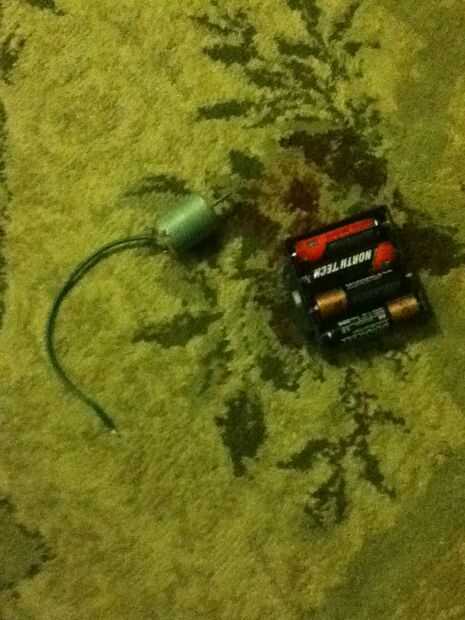 materiales: 1. el motor sin un equipo. Puede usar pinzas para extraer el engranaje. 2. los cables 3. baterías y pilas