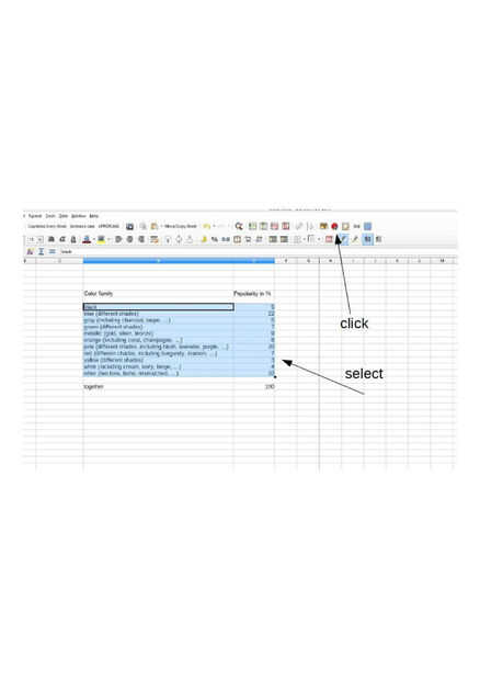 Ahora marque ambos conjuntos de datos: color de vestidos para damas de honor en el primero y el correspondiente porcentaje de popularidad en la segunda columna.