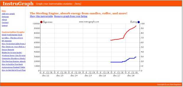 Para satisfacer mi propia curiosidad abofeteó a un sitio web que realiza un seguimiento de las estadísticas de un conjunto de instructables. Una vez cada 15 minutos se obtiene las estadísticas actuales y se guarda en una base de datos. Puede luego en gráficos de trama de la demanda de esos datos.