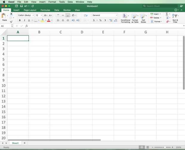 Se le presentará con un libro de Excel con numerosas células. Cada celda puede almacenar información. Para crear un gráfico, tenemos que hacer una tabla que contiene la información a graficar. Porque queremos que los meses del año muestra en el eje x, entramos los meses del año en la primera columna de nuestra tabla. Haga clic en la celda superior, izquierda, celda A1.