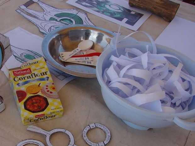 Tazón de fuente, agua y maicena (o almidón de maíz para la mezcla del papier maché)