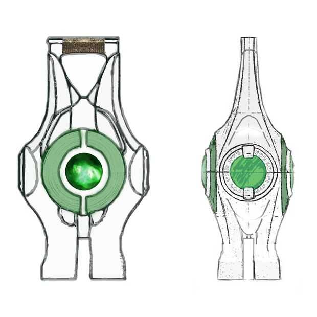 Diseño (I). He agregado todas las fotografías, plantillas y detalle en el archivo pdf, asegúrese de girar apagado escala al imprimir. También he añadido imágenes de 300dpi, si quieres imprimirlas por separado. He intentado utilizar materiales sólo accesibles, si usted puede encontrar sustitutos para facilitar las cosas, por favor, úsalos. Al empezar a hacer que la batería de poder, no dude en personalizarla. No tengo un cuadro detallado para ir (en el momento de fabricación), así que hice un montón de cosas para arriba, alien de la escritura, símbolos, una superficie de roca volcánica más en lugar de un aspecto de vidrio afilado con piedra/jade. Tienen su batería de poder, realizar cambios donde sea necesario, tratando de mantenerse fiel a las características básicas.