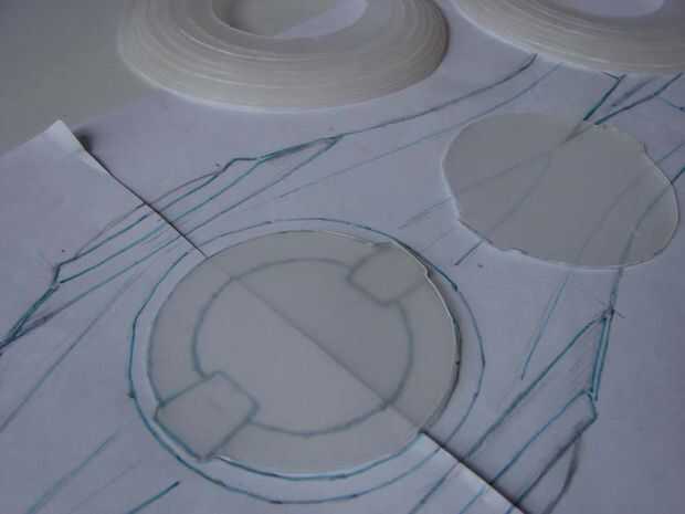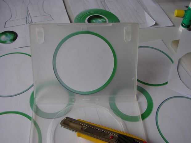 Para hacer las lentes delantera y tambaleó hacia atrás, puede usar cualquier plástico opaco que puede encontrar. Encontré que viejo DVD cubre trabajo muy bien, ya que son aproximadamente de 1mm de espesor lo que permite una profundidad escalonada de alrededor de 10mm.