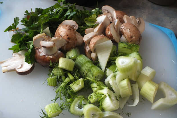 1/2 taza de limpiado, en rodajas de champiñones
