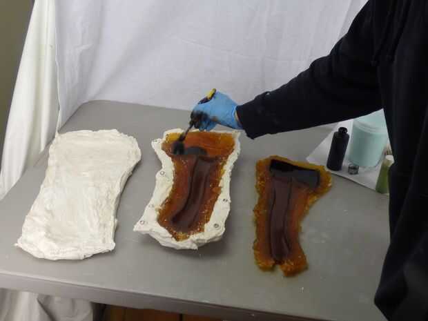 Cuando casting con silicona te puede pintar el molde con aceite o resina tintes pinturas en base.