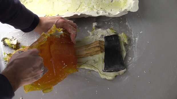 Limpiar el hacha y el molde para prepararlos para la segunda mitad del molde.