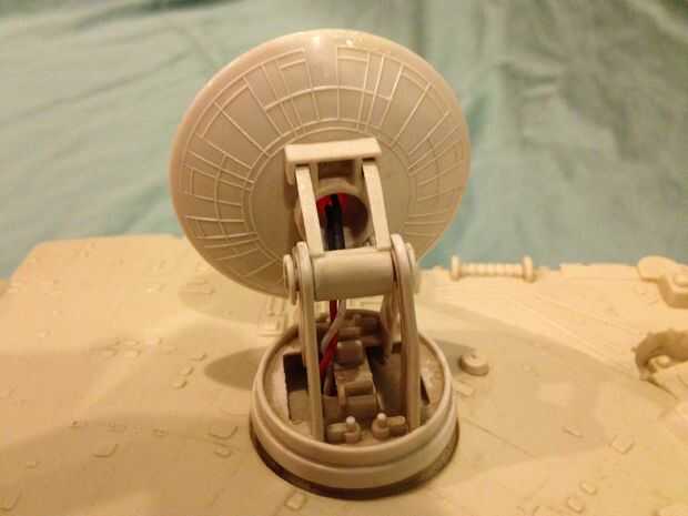 Para el HDD LED todo usted necesita es un taladro y una broca pequeña. Perforado a través de la parte trasera del plato y hacia abajo a través de la base. Inserta el LED en el plato y funcionó el cable a través del orificio en la base. Me han preguntado por qué lo conecto al HHD LED spot y no el LED de Power spot. Les cuento porque quiero que la luz de parpadeo de encendido/apagado como el satélite está enviando señales y no solo estar todo el tiempo. De la torreta me caliente había pegado a la pieza de plástico transparente y luego caliente pegar la pieza clara al Halcón. Ahora la última cosa que hacer es conectar el LED del disco duro a la placa base y vuelva a colocar la parte superior.