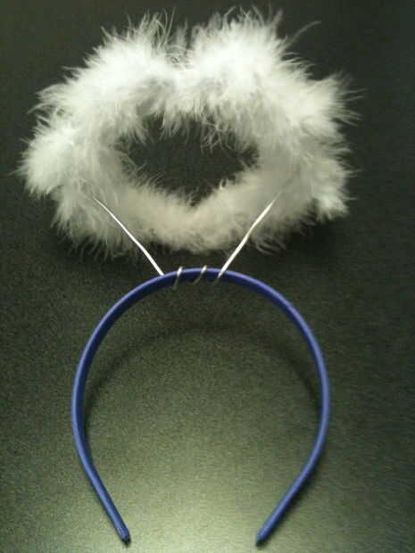 Paso 1: Necesita una diadema blanca, alambre y plumas blancas. Así que pongo algunas plumas sobre i lo.Paso 2: Poner 2 piezas de alambre a cada lado.Paso 3: Paso 3 Entonces puso plumas todo alrededor y luego termines