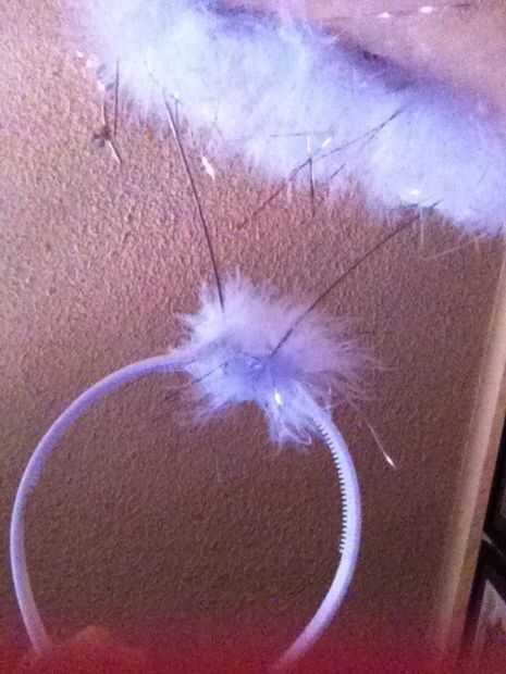 hice esto porque el nimbo de halo es sombrero seria! Ahora estamos en el cielo, nos vestimos de halo.Materiales necesarios.nimbus de plástico halo 1un1 barra de maderab1Carga deber needalc2 20 calibre alambreD, e1 rollo de cinta de pato de colorf1 pe