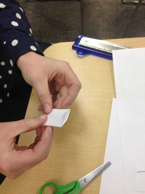 Doble el rectángulo abajo el centro del documento a 4cm de lado (ver foto). Luego desplegar el papel, usted debe ser capaz de ver el pliegue.
