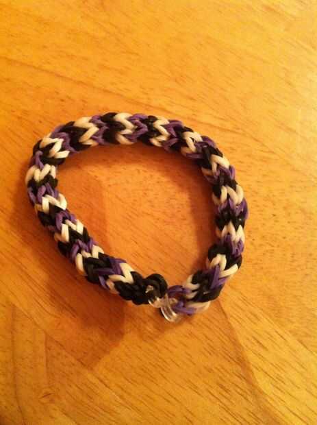 Paso 1: materiales You need :-bandas de caucho-S o C clip-horquilla-lápiz (opcional)Estoy usando púrpura y verdePaso 2: Primer paso Gancho agarrador de la horquilla y su primera banda de goma (el mío es morado) deslícelo a través de la primera cerda,