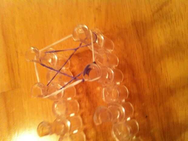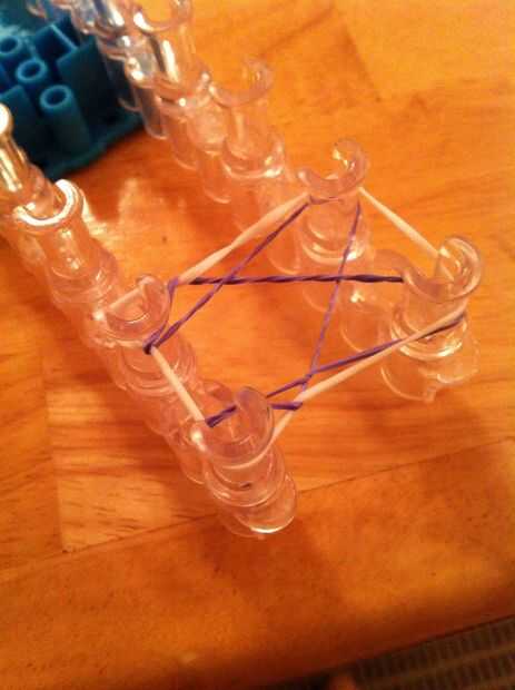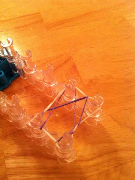 Paso 1: materiales You need :-bandas de caucho-S o C clip-horquilla-lápiz (opcional)Estoy usando púrpura y verdePaso 2: Primer paso Gancho agarrador de la horquilla y su primera banda de goma (el mío es morado) deslícelo a través de la primera cerda,