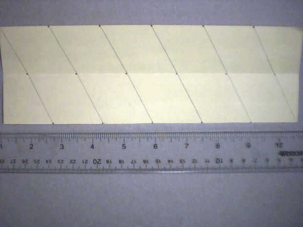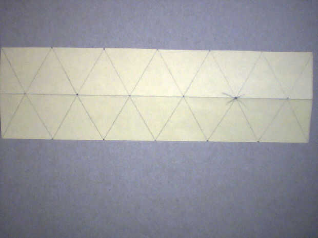 Dibujar líneas diagonales para conectar los puntos. Usted tendrá 2 filas de alternando triángulos equiláteros.