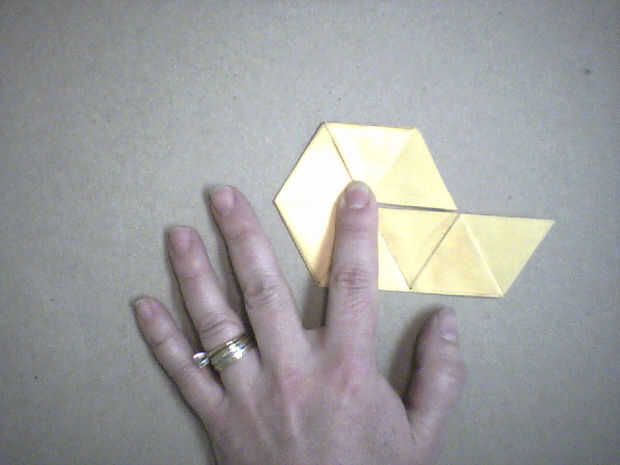 "flexagon" es una manera de doblar y reunirse con papel para hacer un objeto plano que parece tener más de dos lados. Puede sólo mostrar dos de los lados a la vez, por lo que "flex", doblarlo y desplegar de manera particular - para que