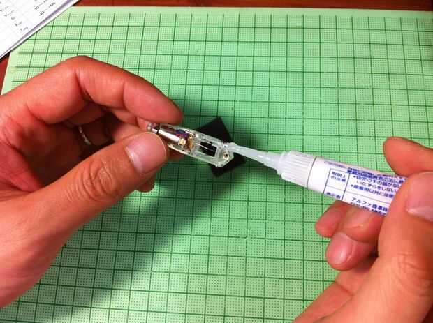 Hacer la tapa y el cuerpo en condiciones de servidumbre con un pegamento instantáneo. Tenga cuidado de no enlazar las piernas y el motor de la vibración. Puede que necesite un poco pegamento para adherir a.