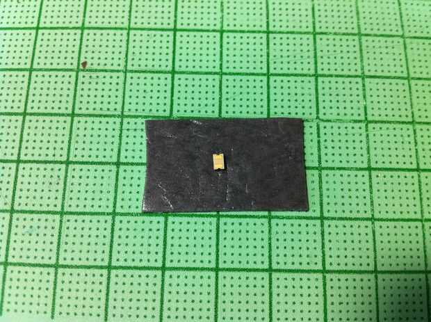 Montar el transistor de la foto en la cinta de doble cara para la cara de la almohadilla.