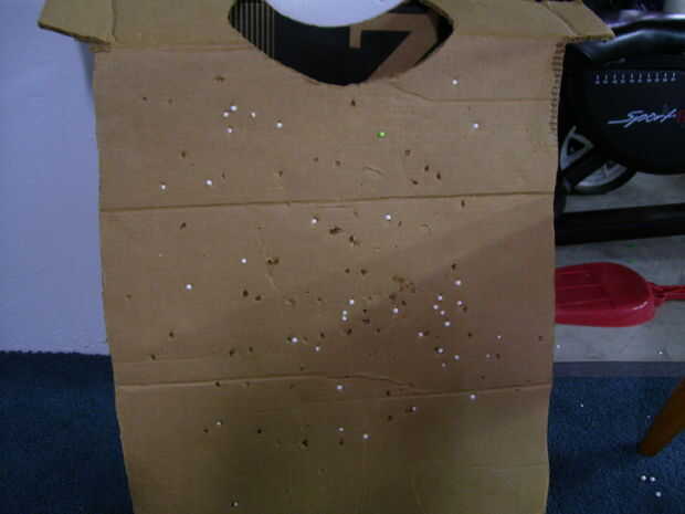 Para hacer la armadura, conseguir un pedazo muy grande de cartón grueso medio. Desea que el cartón sea lo suficientemente gruesa como para detener balas, pero no demasiado gruesas y pesan inhibir el movimiento.