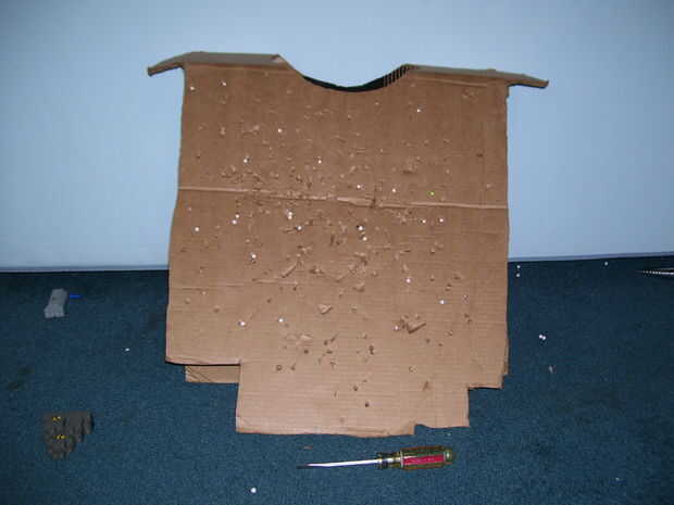 Si aún no desea arriesgar sobresale la mano de su fortaleza, usted puede hacer un agujero de batalla en la armadura. Tome un destornillador o un objeto punzante y apuñalar a un agujero en el lado que tiene la pistola en. Hacer un agujero lo suficientemente grande para su cañón. Tus enemigos va a llorar cuando te ven enfoque.