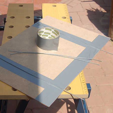 7. cortar tiras de alambre para sujetar a la parte posterior de los paneles, con una longitud de 6mm extra para montar en los bordes laterales. Asegure con cinta adhesiva a lo largo de la longitud, superior e inferior.