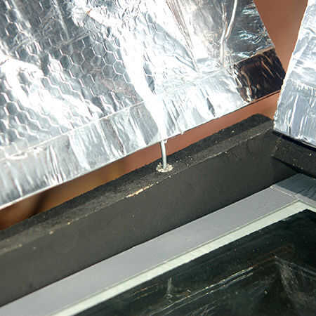 9. en la parte superior del horno de la caja había una brecha sustancial y usé una tira de alfombra de goma para cubrir y no garantizar la pérdida de calor. La tira de goma fue sujetado con grapa a la parte superior del horno de caja. Nota: compré la alfombra de goma en una tienda de tela.
