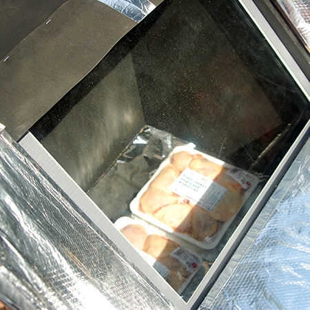 Después de ensamblado y montaje de los paneles reflectantes he probado el horno solar. Dos paquetes de pollo congelados tomaron 20 minutos para descongelar completamente. I planea probar el horno solar para cocción lenta y se informe sobre esto o añadir sus propios comentarios a esta página.