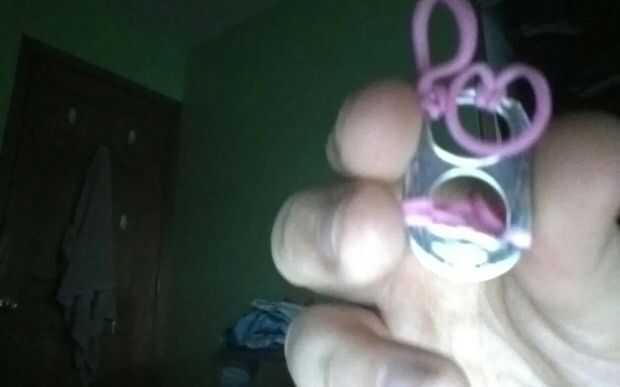 Paso 2 tome una ficha de popcan y 4 b bandas color hacer nudos corredizos en esas bandas.