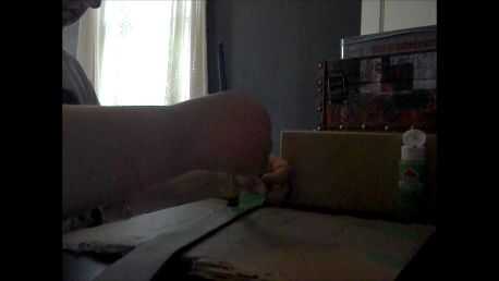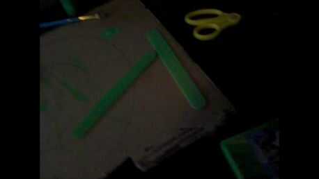 -Después de pintar los palitos y el lado blanco de la cinta verde con la pintura mineral.