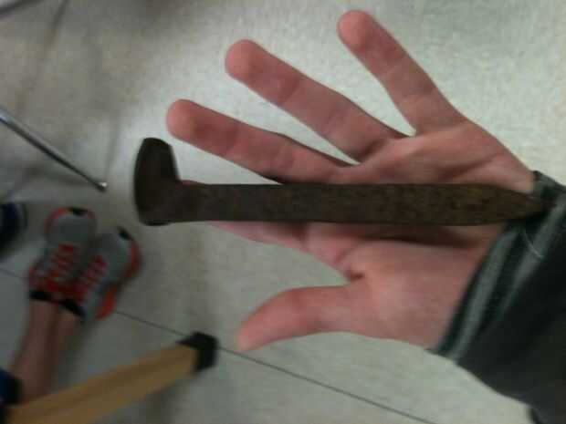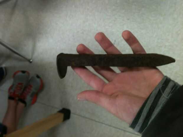 1. (x 6) 6" espiga de hierro del ferrocarril. (Podía creer todos usan estos por ahora es para antigüedades y ferias de la cuchillería. No creo que empresas del ferrocarril incluso usan ya!)